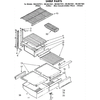 Parts for Kenmore 106.8627481 (1068627481, 106 8627481): Shelf Parts