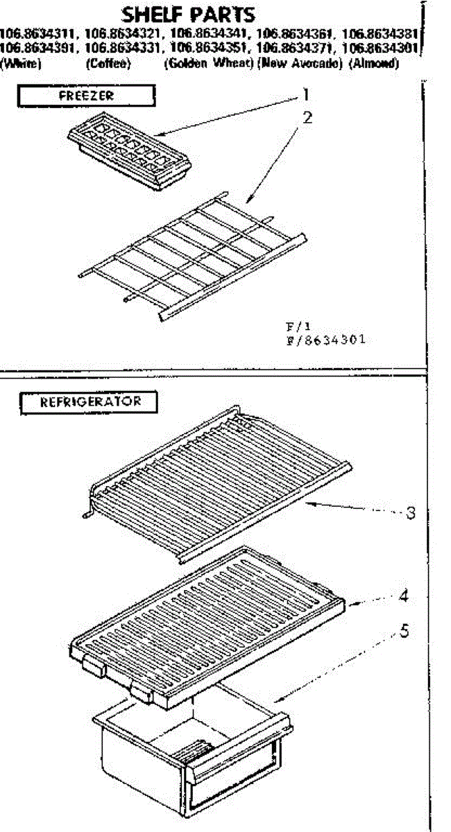 Parts for Kenmore 106.8634341 (1068634341, 106 8634341): Shelf Parts
