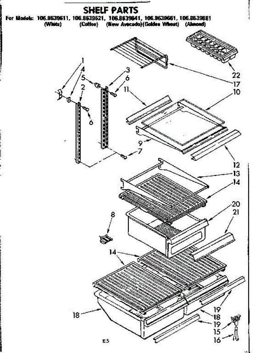 Parts for Kenmore 106.8639641 (1068639641, 106 8639641): Shelf Parts