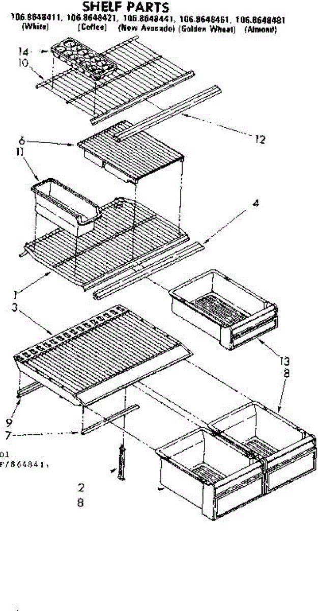 Parts for Kenmore 106.8648421 (1068648421, 106 8648421): Shelf Parts