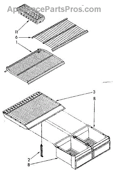 Parts for Kenmore 106.8664374 (1068664374, 106 8664374): Shelf Parts