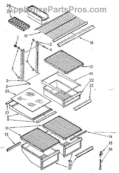 This replacement ice cube tray is a direct-fit plastic tray designed to hold and release ice cubes in compatible top- or bottom-freezer refrigerators. Restores convenient ice storage and simple manual ice removal. What it does: