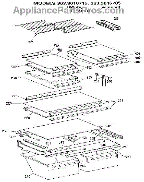 Parts for Kenmore 363.9616715 (3639616715, 363 9616715): Shelf Parts