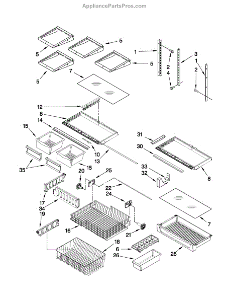 The Crisper Shelf Frame is an OEM part for Whirlpool side-by-side refrigerators. It provides sturdy tracked support for organizing vegetables and other produce items in the crisper drawers. The glass and center support are NOT included and must be ordered separately.