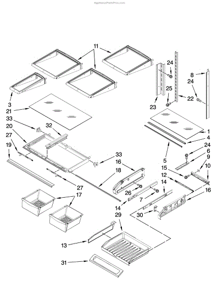 The Crisper Shelf Frame is an OEM part for Whirlpool refrigerators. It supports the crisper drawers and holds the glass shelf above them, providing stability and organization for your fresh produce.