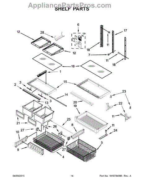 The Shelf Frame is an OEM part for Whirlpool refrigerators. It supports the refrigerator shelves, providing a sturdy and stable base for food storage. This frame ensures that the glass or wire shelves remain securely in place and can handle the weight of stored items. The frame measures about 28 by 15.5 inches.