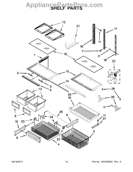 The Shelf Frame is an OEM part for Whirlpool refrigerators. It supports the refrigerator shelves, providing a sturdy and stable base for food storage. This frame ensures that the glass or wire shelves remain securely in place and can handle the weight of stored items. The frame measures about 28 by 15.5 inches.