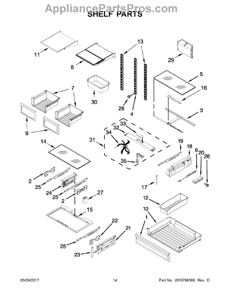 The Drawer Slide Rail is an OEM part for Whirlpool refrigerators. It is designed to allow freezer or refrigerator drawers to glide smoothly in and out. Causes of a bad refrigerator slide rail can be wear and tear over long-term use. Accidental damage from overloading a drawer or rough handling can also prematurely wear out slide rails. Symptoms of a bad slide rail include: