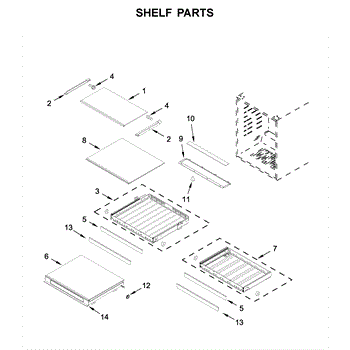 This top wine rack assembly replaces the refrigerator's upper bottle rack, restoring secure, organized storage for wine and other bottled beverages. Designed to fit into the top shelf area and hold bottles in place during normal use. What it does: