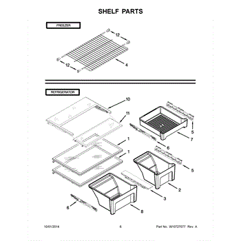 Wire shelf for top-mount refrigerators, 30-inch width. Installs inside fresh food compartment. Replace if cracked, bent, or rusted. Holds food items.