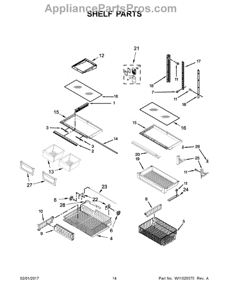 The Shelf Frame is an OEM part for Whirlpool refrigerators. It supports the refrigerator shelves, providing a sturdy and stable base for food storage. This frame ensures that the glass or wire shelves remain securely in place and can handle the weight of stored items. The frame measures about 28 by 15.5 inches.
