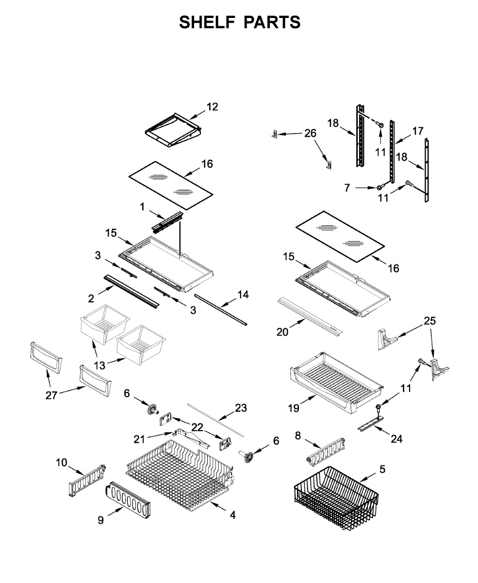 The Shelf Frame is an OEM part for Whirlpool refrigerators. It supports the refrigerator shelves, providing a sturdy and stable base for food storage. This frame ensures that the glass or wire shelves remain securely in place and can handle the weight of stored items. The frame measures about 28 by 15.5 inches.
