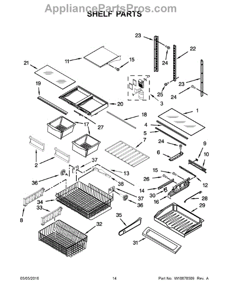 Glass shelf that provides a sturdy, flat surface for organizing refrigerator items and maximizing usable storage. Replaces damaged or missing shelves to restore stable support and proper spacing inside the fridge. What it does: