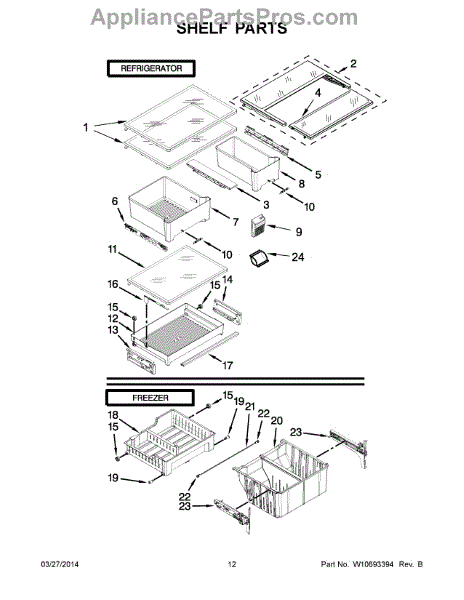 The Rail is an OEM part for Whirlpool side-by-side refrigerators. It forms an adjustable track system that refrigerator shelves easily glide on.