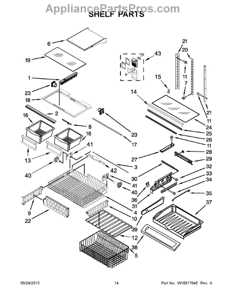 The Crisper Shelf Frame is an OEM part for Whirlpool side-by-side refrigerators. It provides sturdy tracked support for organizing vegetables and other produce items in the crisper drawers. The glass and center support are NOT included and must be ordered separately.