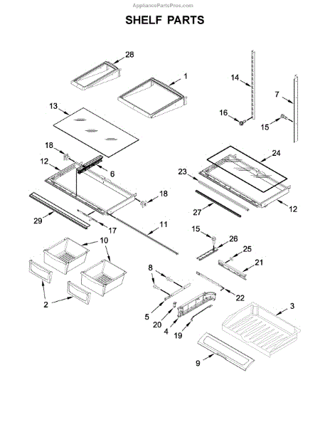 Causes of a bad shelf frame can include wear and tear from holding heavy items, accidental impact, or warping due to temperature changes. A compromised frame can lead to an unstable shelf, potentially causing damage to stored items and affecting the overall organization of the refrigerator.