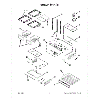 The Storage Drawer is an OEM replacement part for Whirlpool refrigerators. It provides customizable organization for items like snack foods, beverages, and condiments inside the refrigerator cabinet. The drawer measures approximately 27"x 20"x 6". Causes of a bad storage drawer can include broken mounting slides, making it difficult to open or close securely. Overpacking may also cause cracks in the plastic construction over time. Symptoms of a bad storage drawer include: