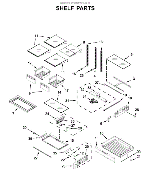 The DRAWER GLIDE is an OEM component specifically designed for bottom-mount Whirlpool refrigerators. It facilitates smooth extension and retraction of refrigerator shelves and drawers.