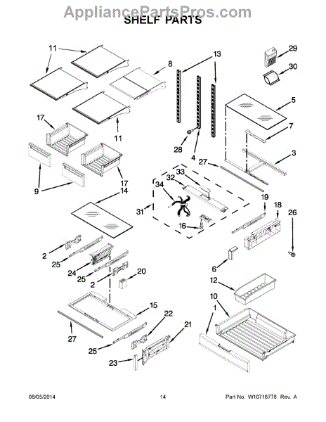 The Storage Drawer is an OEM replacement part for Whirlpool refrigerators. It provides customizable organization for items like snack foods, beverages, and condiments inside the refrigerator cabinet. The drawer measures approximately 27"x 20"x 6". Causes of a bad storage drawer can include broken mounting slides, making it difficult to open or close securely. Overpacking may also cause cracks in the plastic construction over time. Symptoms of a bad storage drawer include: