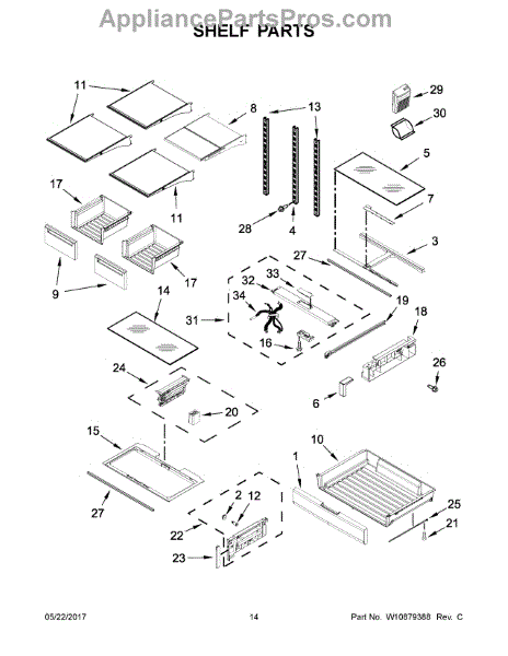 The Storage Drawer is an OEM replacement part for Whirlpool refrigerators. It provides customizable organization for items like snack foods, beverages, and condiments inside the refrigerator cabinet. The drawer measures approximately 27"x 20"x 6". Causes of a bad storage drawer can include broken mounting slides, making it difficult to open or close securely. Overpacking may also cause cracks in the plastic construction over time. Symptoms of a bad storage drawer include: