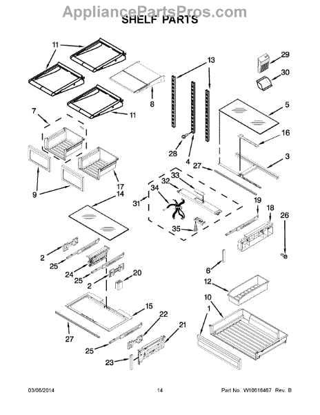 The Storage Drawer is an OEM replacement part for Whirlpool refrigerators. It provides customizable organization for items like snack foods, beverages, and condiments inside the refrigerator cabinet. The drawer measures approximately 27"x 20"x 6". Causes of a bad storage drawer can include broken mounting slides, making it difficult to open or close securely. Overpacking may also cause cracks in the plastic construction over time. Symptoms of a bad storage drawer include:
