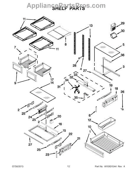 The Storage Drawer is an OEM replacement part for Whirlpool refrigerators. It provides customizable organization for items like snack foods, beverages, and condiments inside the refrigerator cabinet. The drawer measures approximately 27"x 20"x 6". Causes of a bad storage drawer can include broken mounting slides, making it difficult to open or close securely. Overpacking may also cause cracks in the plastic construction over time. Symptoms of a bad storage drawer include: