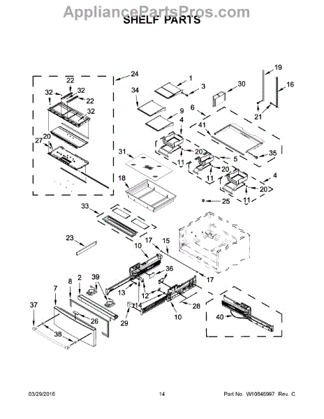 The Glass Shelf is an OEM part for Whirlpool refrigerators. This shelf provides a stable and durable surface for storing food items within the refrigerator, helping to keep the interior organized and allowing easy access to stored items. Causes of a bad glass shelf can include accidental impacts, overloading with heavy items, or thermal stress from placing hot containers directly on the glass. Symptoms of a bad glass shelf include: