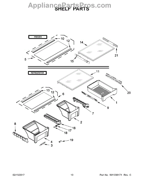 This shelf trim replaces the front-facing plastic trim on a refrigerator shelf, restoring a secure shelf edge and clean appearance. It helps keep items from sliding off and finishes the shelf opening for everyday use. What it does: