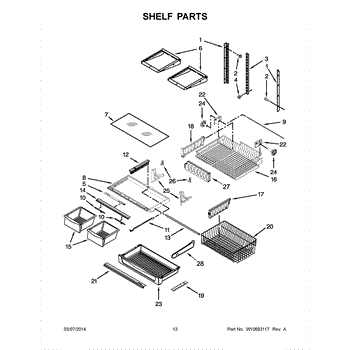 The Shelf Frame is an OEM part for Whirlpool refrigerators. It supports the refrigerator shelves, providing a sturdy and stable base for food storage. This frame ensures that the glass or wire shelves remain securely in place and can handle the weight of stored items. The frame measures about 28 by 15.5 inches.