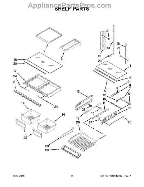 Note: For the left-hand side Pantry Drawer Support, order part number WP12656105.
