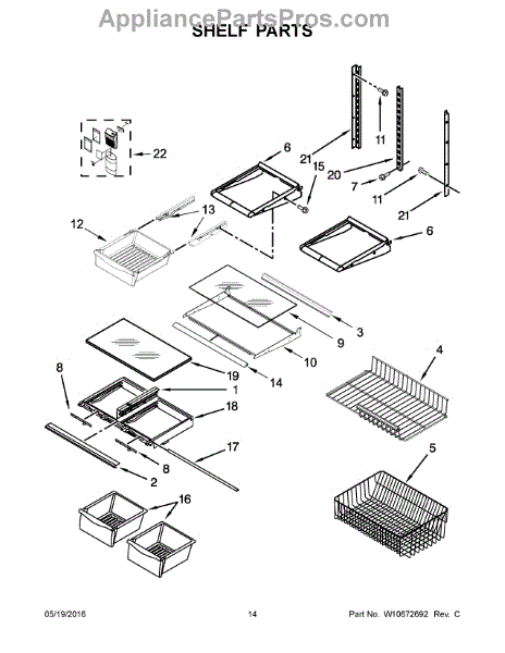 Replacement shelf frame for your refrigerator. Installs inside the fresh food compartment to support glass or wire shelves. Replace if cracked or broken.