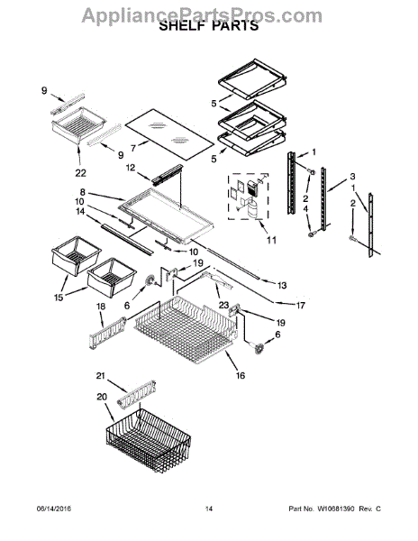 The Crisper Pan is an OEM part for Whirlpool refrigerators. It is designed to store fruits and vegetables, helping to maintain their freshness by providing a controlled environment within the refrigerator. This drawer measures approximately 14.75" X 12.5" X 6.25".