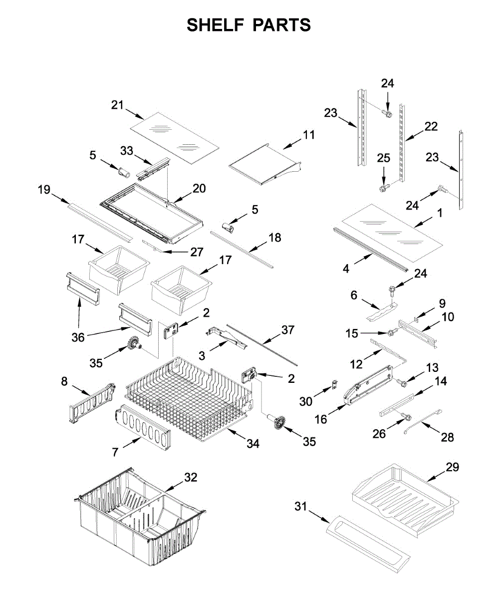 Causes of a bad shelf frame can include wear and tear from holding heavy items, accidental impact, or warping due to temperature changes. A compromised frame can lead to an unstable shelf, potentially causing damage to stored items and affecting the overall organization of the refrigerator.