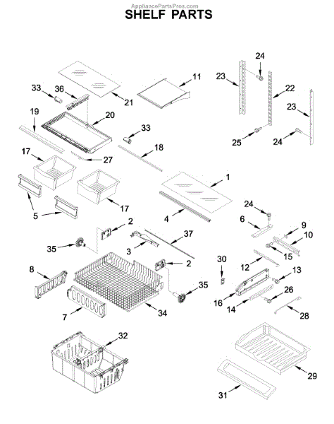 This Glass Shelf is an OEM part for Whirlpool Refrigerators. It provides a stable surface for storing items within the refrigerator. Physical damage or wear can affect its structural integrity. What Causes a Bad Glass Shelf: Physical impacts, scratches, or wear can weaken or damage the glass shelf. Symptoms of a Bad Glass Shelf: