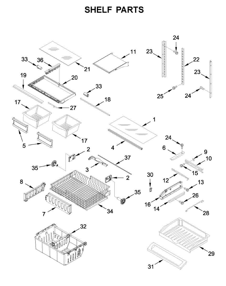 Causes of a bad shelf frame can include wear and tear from holding heavy items, accidental impact, or warping due to temperature changes. A compromised frame can lead to an unstable shelf, potentially causing damage to stored items and affecting the overall organization of the refrigerator.