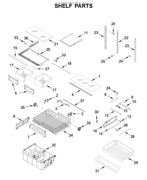 This Glass Shelf is an OEM part for Whirlpool Refrigerators. It provides a stable surface for storing items within the refrigerator. Physical damage or wear can affect its structural integrity. What Causes a Bad Glass Shelf: Physical impacts, scratches, or wear can weaken or damage the glass shelf. Symptoms of a Bad Glass Shelf: