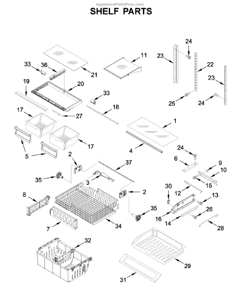 Causes of a bad shelf frame can include wear and tear from holding heavy items, accidental impact, or warping due to temperature changes. A compromised frame can lead to an unstable shelf, potentially causing damage to stored items and affecting the overall organization of the refrigerator.