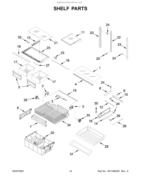 The Shelf Frame is an OEM part for Whirlpool refrigerators. It supports the glass or wire shelves, providing a stable platform for storing food and beverages inside the refrigerator. The shelf frame measures approximately 32 by 19 inches.