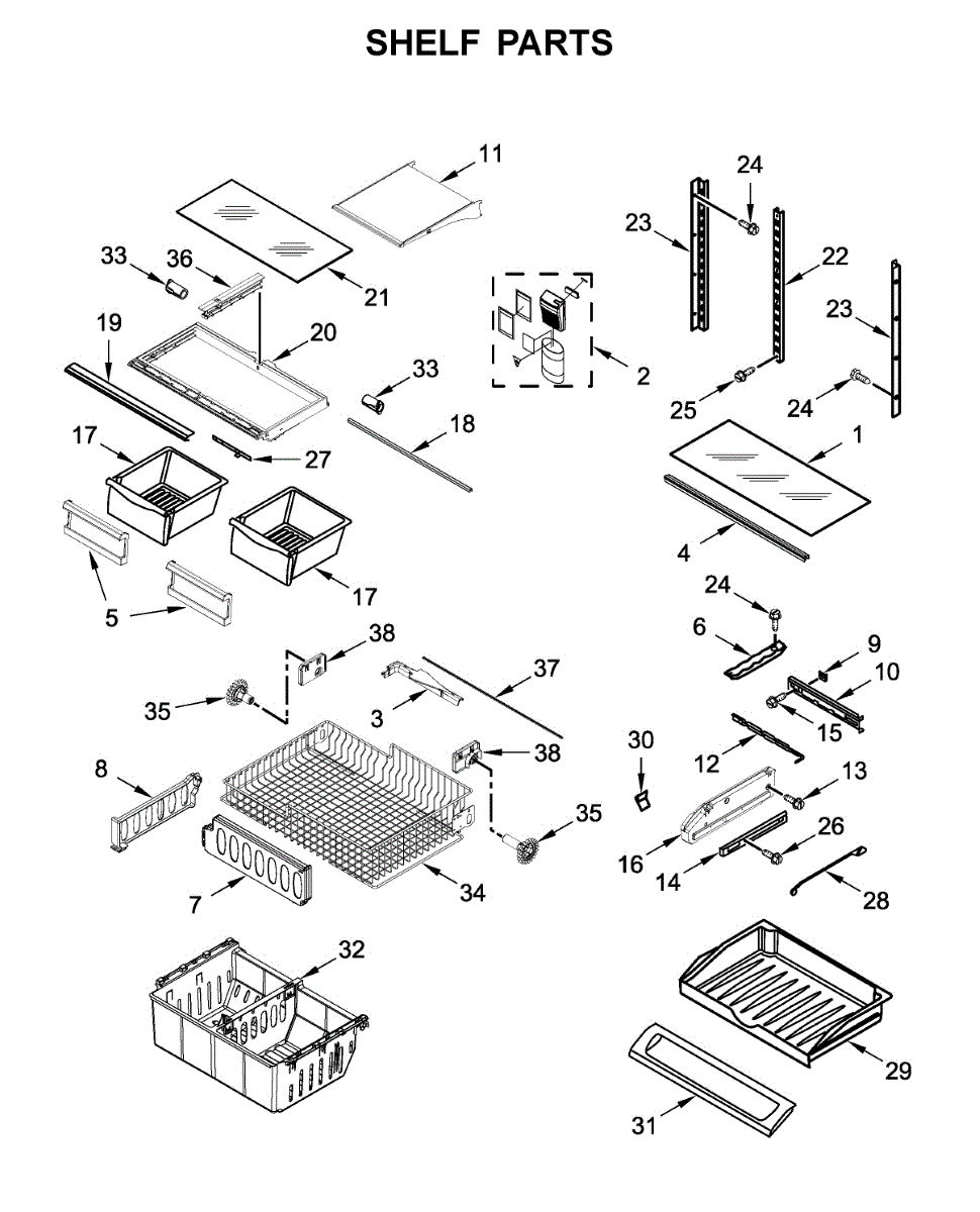 Causes of a bad shelf frame can include wear and tear from holding heavy items, accidental impact, or warping due to temperature changes. A compromised frame can lead to an unstable shelf, potentially causing damage to stored items and affecting the overall organization of the refrigerator.