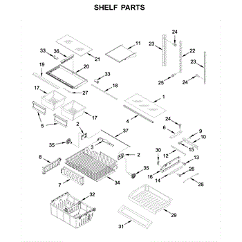 Refrigerator shelf frame that supports glass or wire shelves inside the fridge. Replace if cracked, broken, or warped to restore proper shelf support.