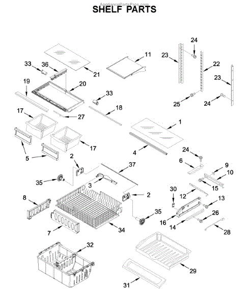 Replacement trim piece for refrigerator shelf front edge. Restores appearance and prevents items from sliding forward. Needed when trim is cracked or missing.