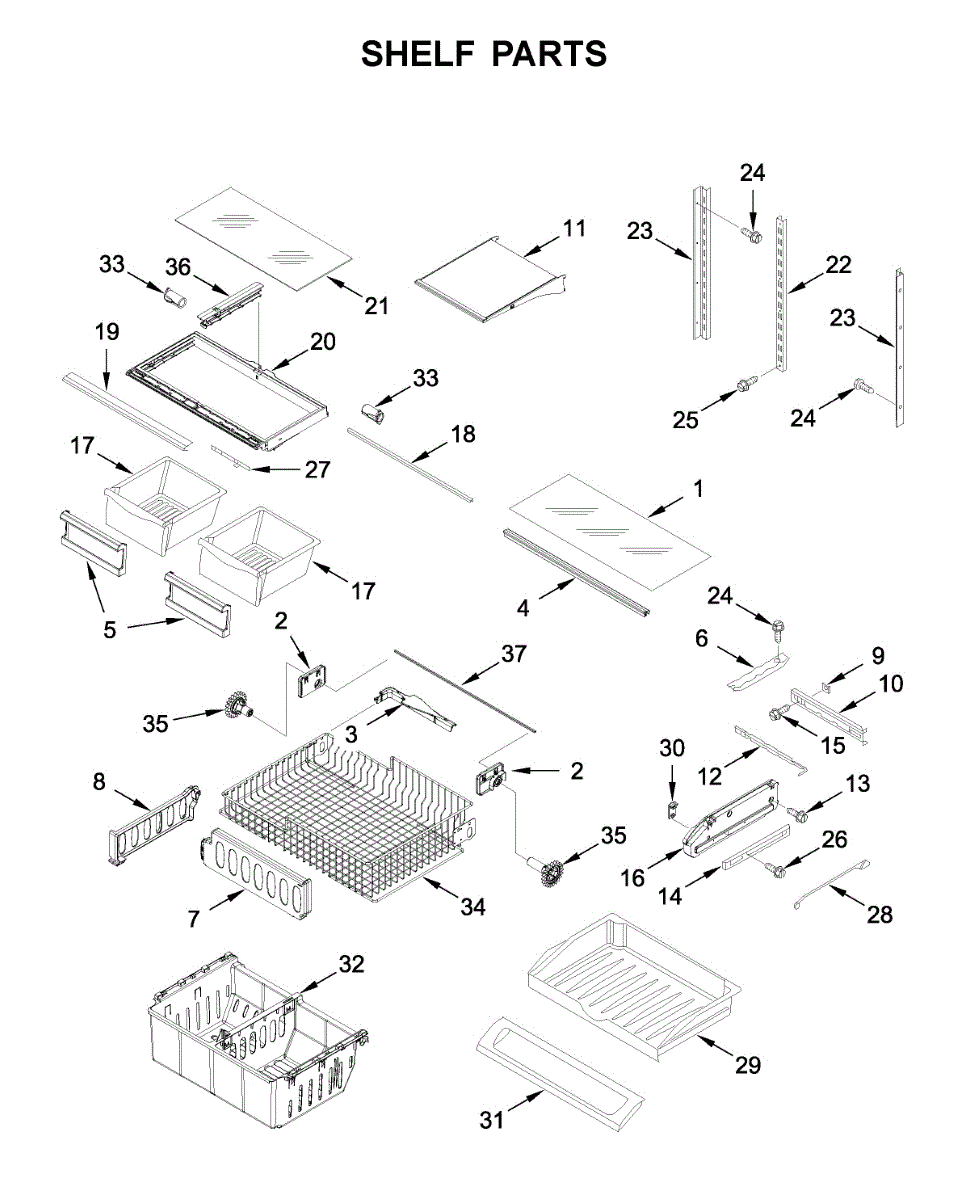 This Glass Shelf is an OEM part for Whirlpool Refrigerators. It provides a stable surface for storing items within the refrigerator. Physical damage or wear can affect its structural integrity. What Causes a Bad Glass Shelf: Physical impacts, scratches, or wear can weaken or damage the glass shelf. Symptoms of a Bad Glass Shelf: