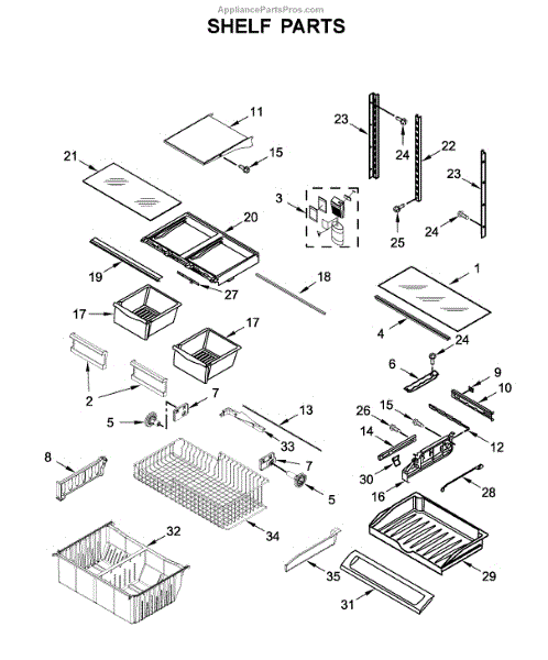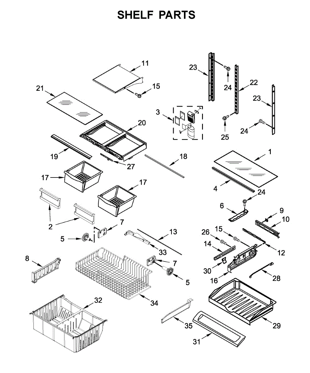 Note: For the left-hand side Pantry Drawer Support, order part number WP12656105.