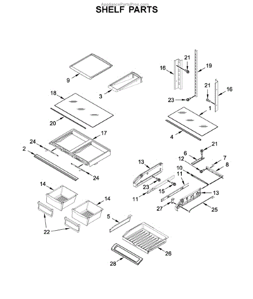Note: For the left-hand side Pantry Drawer Support, order part number WP12656105.
