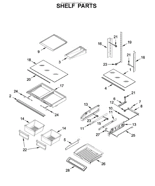Note: For the left-hand side Pantry Drawer Support, order part number WP12656105.