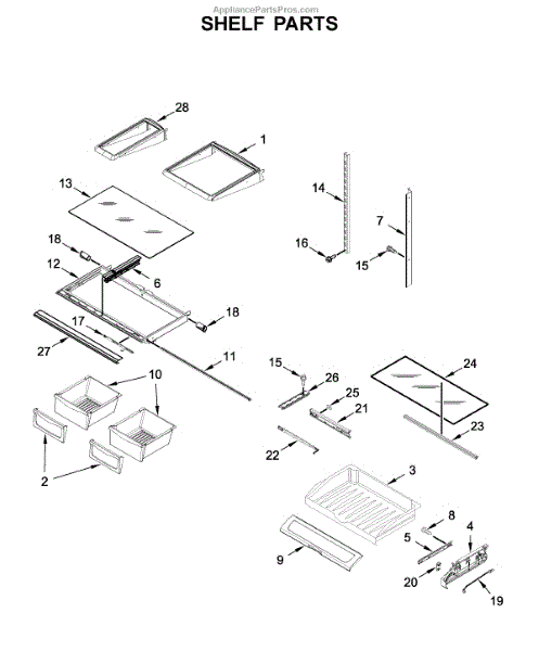 Causes of a bad shelf frame can include wear and tear from holding heavy items, accidental impact, or warping due to temperature changes. A compromised frame can lead to an unstable shelf, potentially causing damage to stored items and affecting the overall organization of the refrigerator.