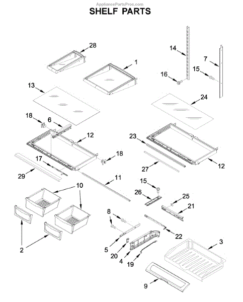 Causes of a bad shelf frame can include wear and tear from holding heavy items, accidental impact, or warping due to temperature changes. A compromised frame can lead to an unstable shelf, potentially causing damage to stored items and affecting the overall organization of the refrigerator.