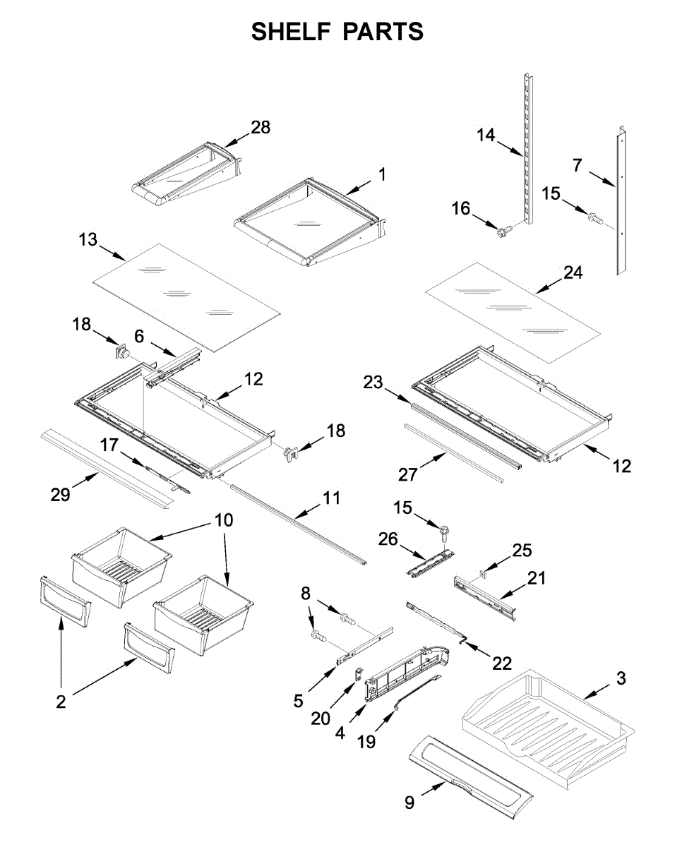 The Crisper Shelf Trim is an OEM part for Whirlpool bottom-mount refrigerators. It is a smooth plastic trim installed around the perimeter of refrigerator crisper shelves. The shelf trim works to contain humidity and gently guide vegetables back into place.