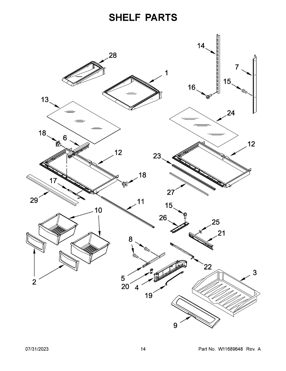 Parts for Whirlpool WRF555SDHW08: Shelf Parts