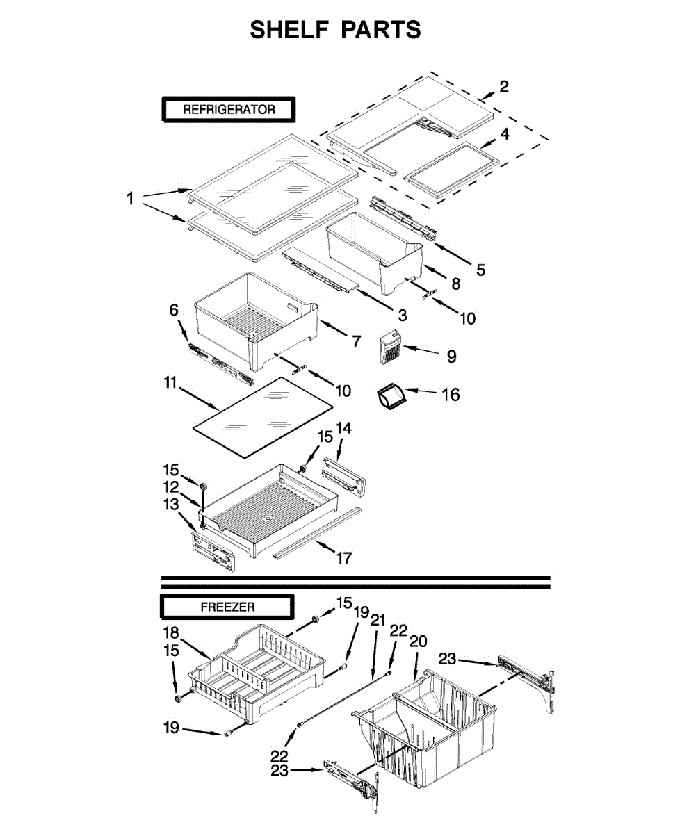Restore safe, usable storage space with this 2/3-width refrigerator glass shelf. It provides a strong, easy-to-clean surface in the designated flip-style shelf position when the original shelf is cracked, missing, or won't seat securely.